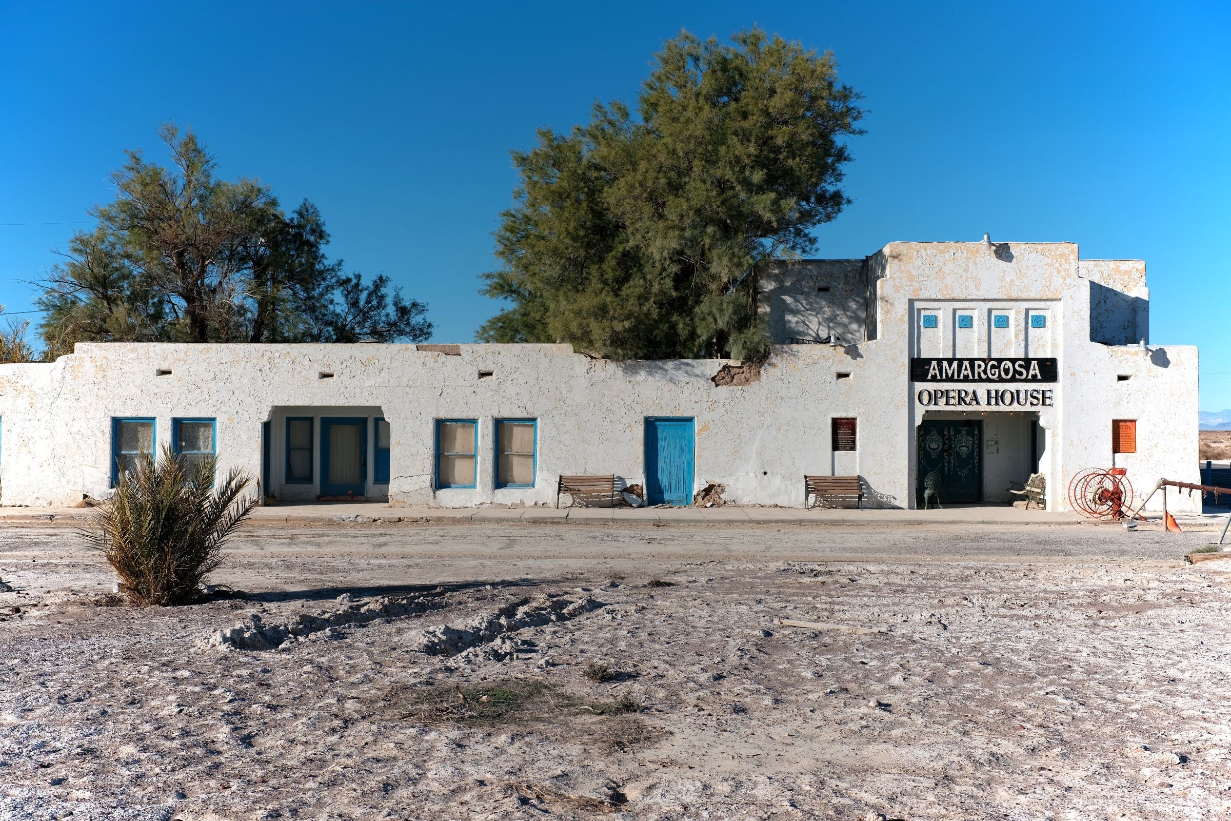 Near the California/Nevada border, at a tangle of highways called Death Valley Junction, a few crumbling buildings rest in the sun. Once a company mining town, the Amargosa Opera House and Hotel still apparently conducts business to this day. Where workers once sought shelter from the heat and attended church services, a dancer named Marta Beckett took over the ruins and held performances for years. Today, you can occasionally still catch a show, or simply walk around, observing how the caked mud mirrors the peeling paint, while honest-to-God tumbleweeds jostle across the highway.